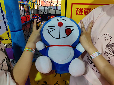 蹦沙卡拉卡,蹦沙卡拉卡,全場響起了音樂,原來是有獎(jiǎng)競答活動(dòng),優(yōu)勝者可以選擇在全場甚至于整個(gè)倉庫選擇自己最喜愛的娃娃將心愛的它帶回家,一輪輪的比拼,我們的道婷小同志過五關(guān)斬六將,終于進(jìn)入了總決賽,最后激動(dòng)人心的時(shí)刻到來了,冠軍爭奪大PK,咦一一,沒想到這么激烈的游戲最后以石頭剪刀布的方式落下帷幕,而冠軍當(dāng)然就是我們幸運(yùn)無比的道婷小同志,她選擇了最愛的哆啦A夢(晚上她一定能抱著她睡個(gè)好覺)哈哈哈哈