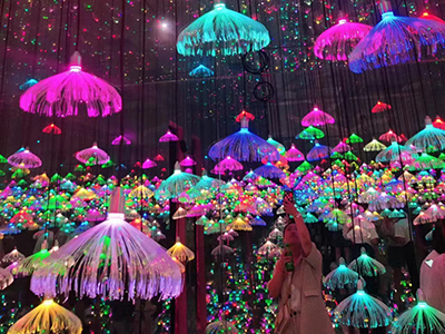 漂亮的星空館各位美少女拍著美照配著館里所呈現(xiàn)的獨(dú)特的視覺效果
